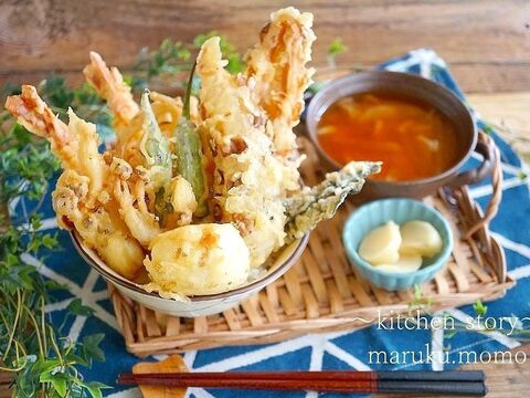 まるで夢のよう 油の吸収が50 の天ぷら粉 半熟卵の天丼セットを作りました 暮らしニスタ